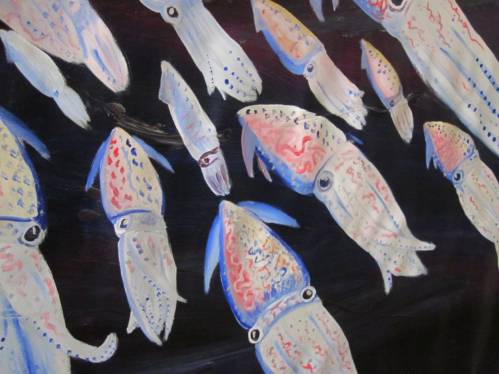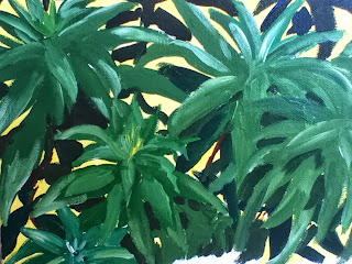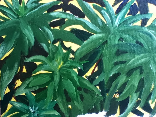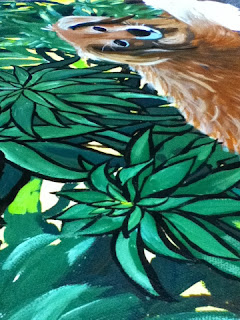 Moving forward, the bush was painted, then Fox, then the succulents in the foreground. It took a decent amount of work to get Foxy's proportions just right, and to really catch that spark in her eye.